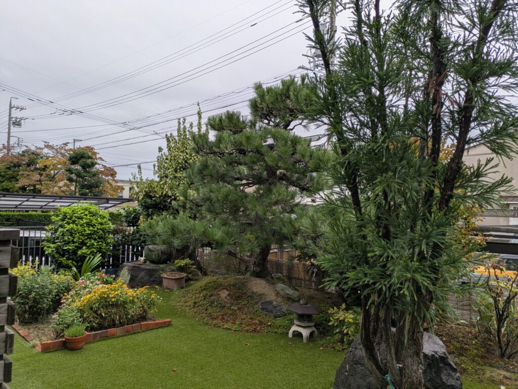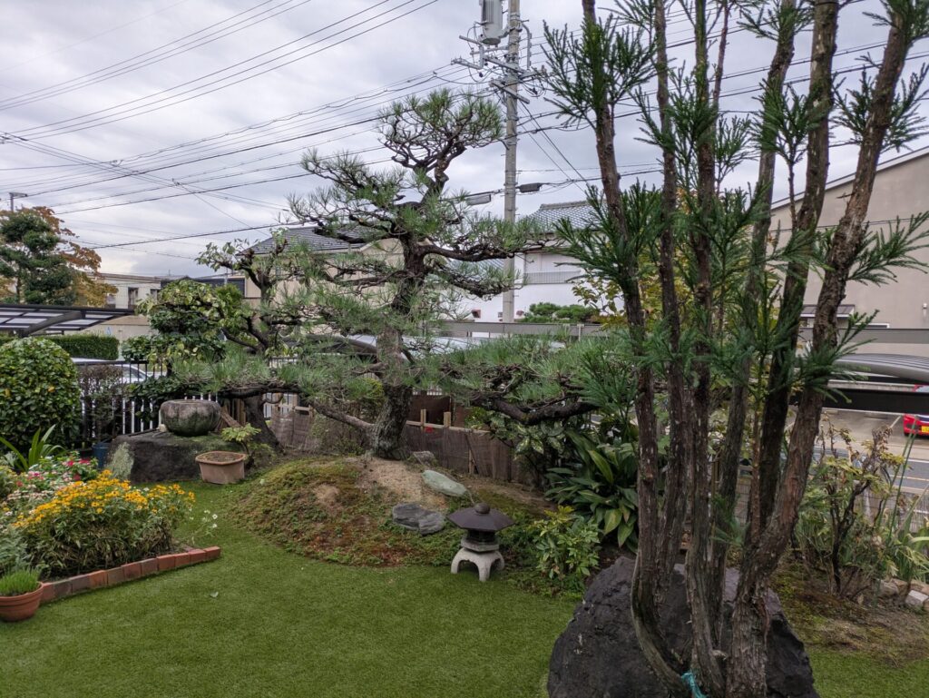 黒松に台杉、梅に椿等昔ながらの代表的な日本の庭木が植わってあるお庭です。